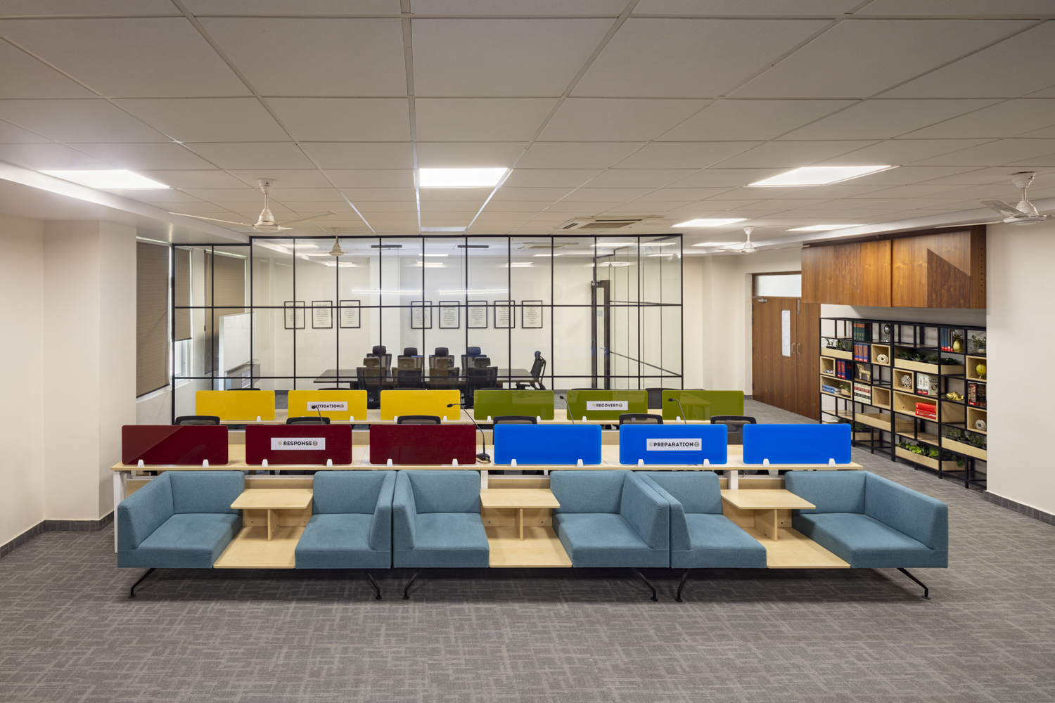 Project Overview Momentum Interiors collaborated with the Climate Resilience Observatory(CRO) in Lucknow to create a state-of-the-art operational workspace that brings coordination, data, and decision-making under